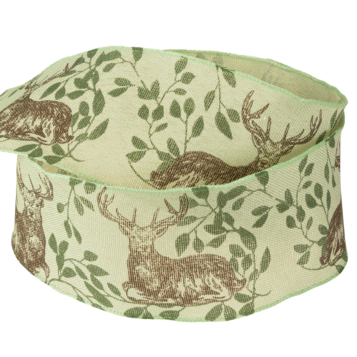 Vánoční stuha s motivem jelena stuha světle zelená 40mm 20m