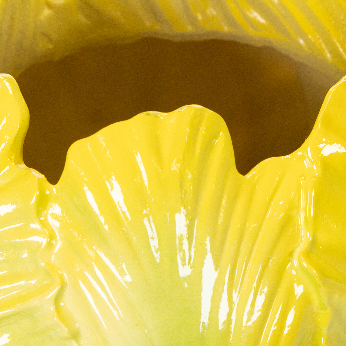 Tato váza je víc než jen domovem pro květiny – je to designový kousek, který harmonicky zapadne do každého obytného prostoru. Její výrazný tvar připomíná kvetoucí tulipán s jemně tvarovanými, vějířovitě rozevřenými okvětními lístky v zářivém žluté a zelené gradientu. To dodává váze přirozený a zároveň moderní vzhled. Praktické: váza je vyrobena z polyresinu, je odolná a snadno se o ni pečuje. Ať už aranžujete čerstvé tulipány, voňavé hyacinty nebo jemné větvičky, váza poskytuje harmonické prostředí. Obzvláště působivě vypadá v kombinaci s dalšími doplňky ve stejné barevné paletě, jako jsou pastelově zbarvené ubrousky nebo svíčky s jemnou jarní vůní. Tip: Tato sada váz je také skvělým dárkem. V kombinaci s kyticí barevných květin zaručeně udělá dojem. Pro decentnější vzhled můžete vázu naplnit sušenými květinami nebo umělými květinami v květinové pěně, nebo dokonce zasadit něco jiného. Takto získáte stylovou dekoraci na celý rok.