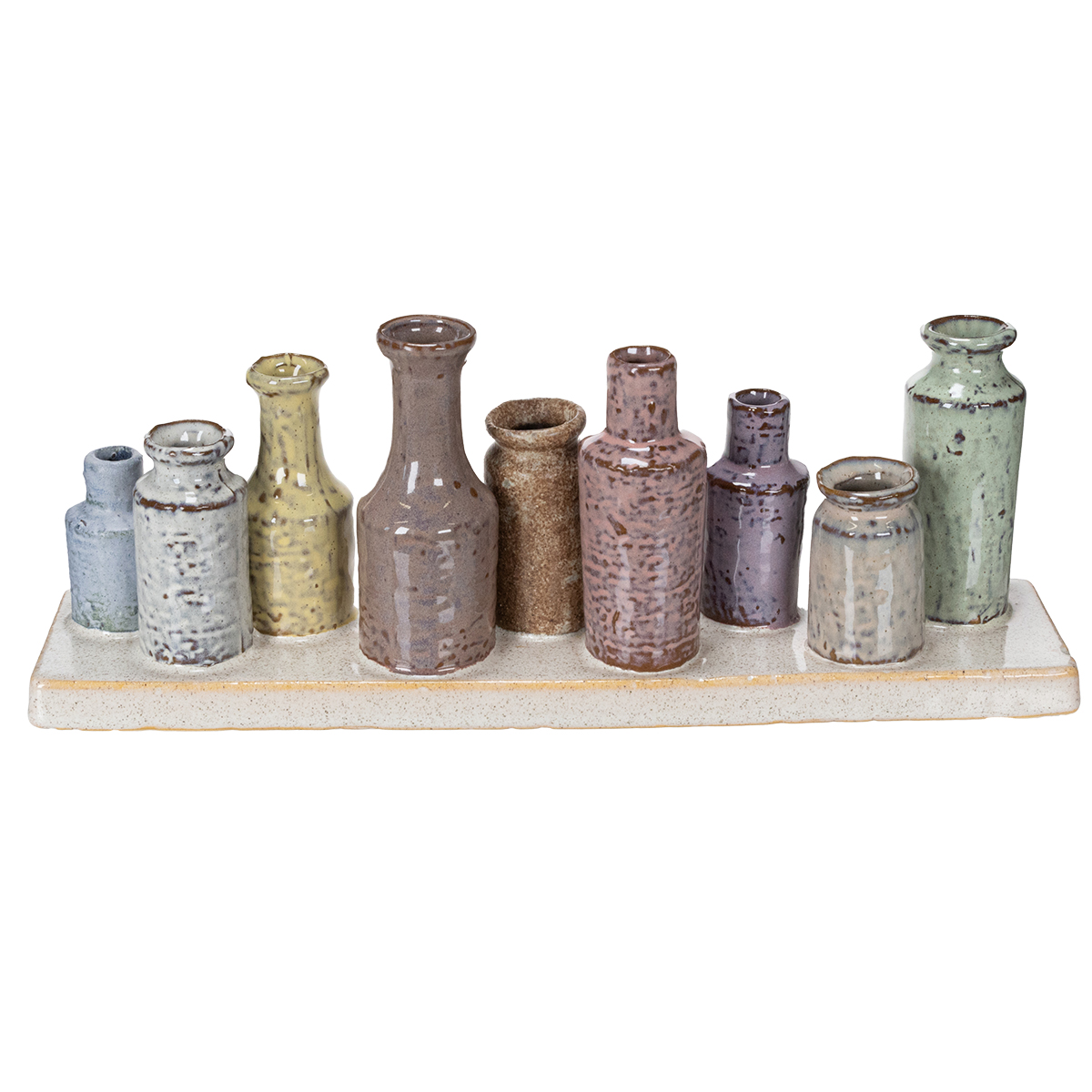 - 9 malých, ručně vyrobených keramických váz ve sladěných barvách