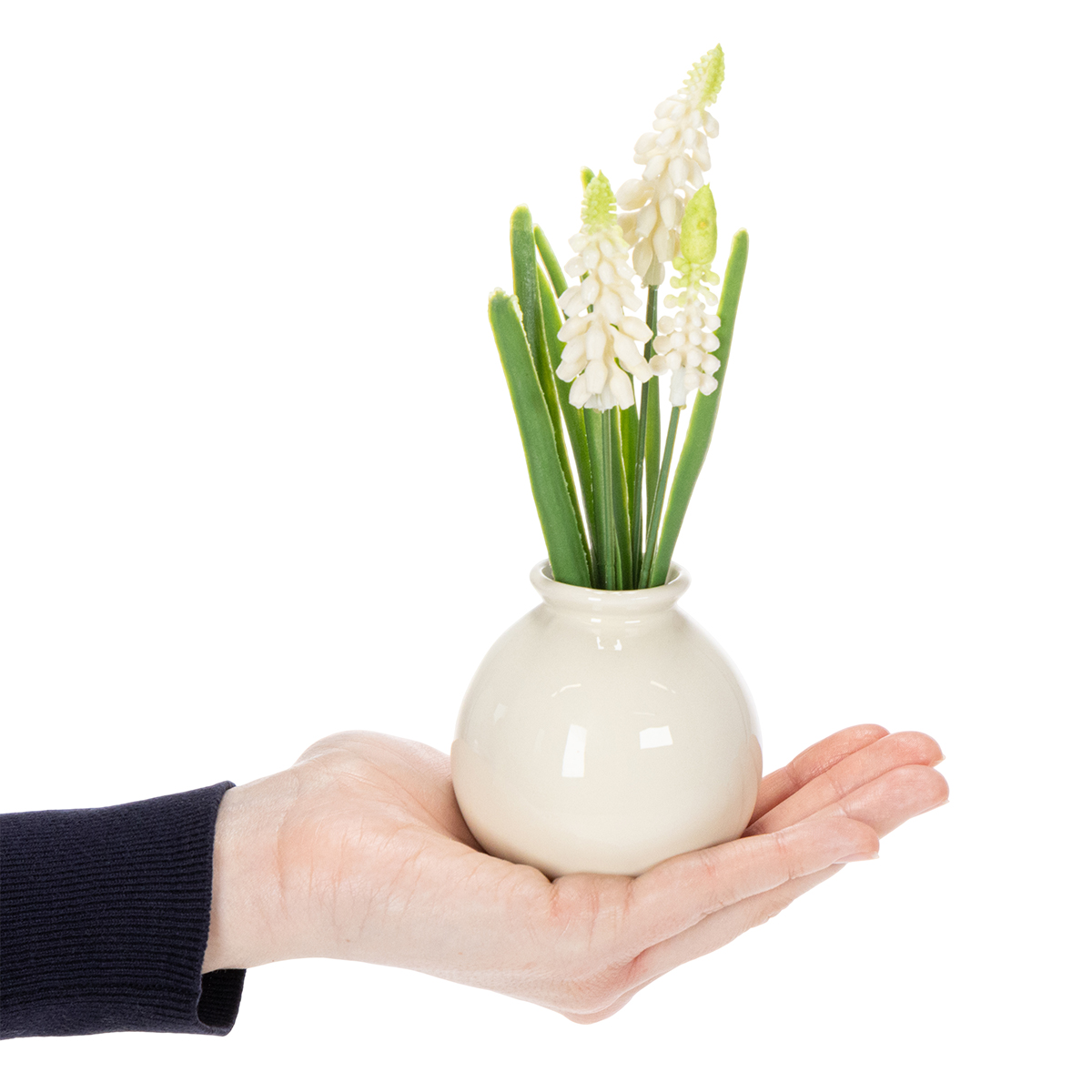 - Barva: Jemné bílé květy, krémově bílá váza
