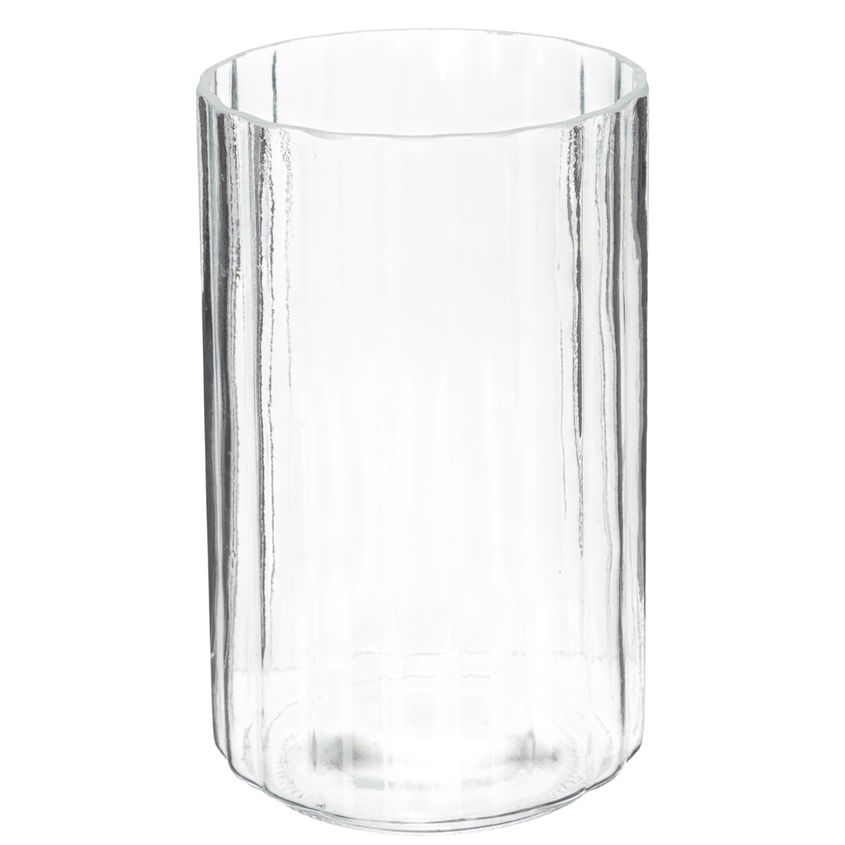 Průhledná skleněná váza s pruhovanou texturou – praktická a elegantní