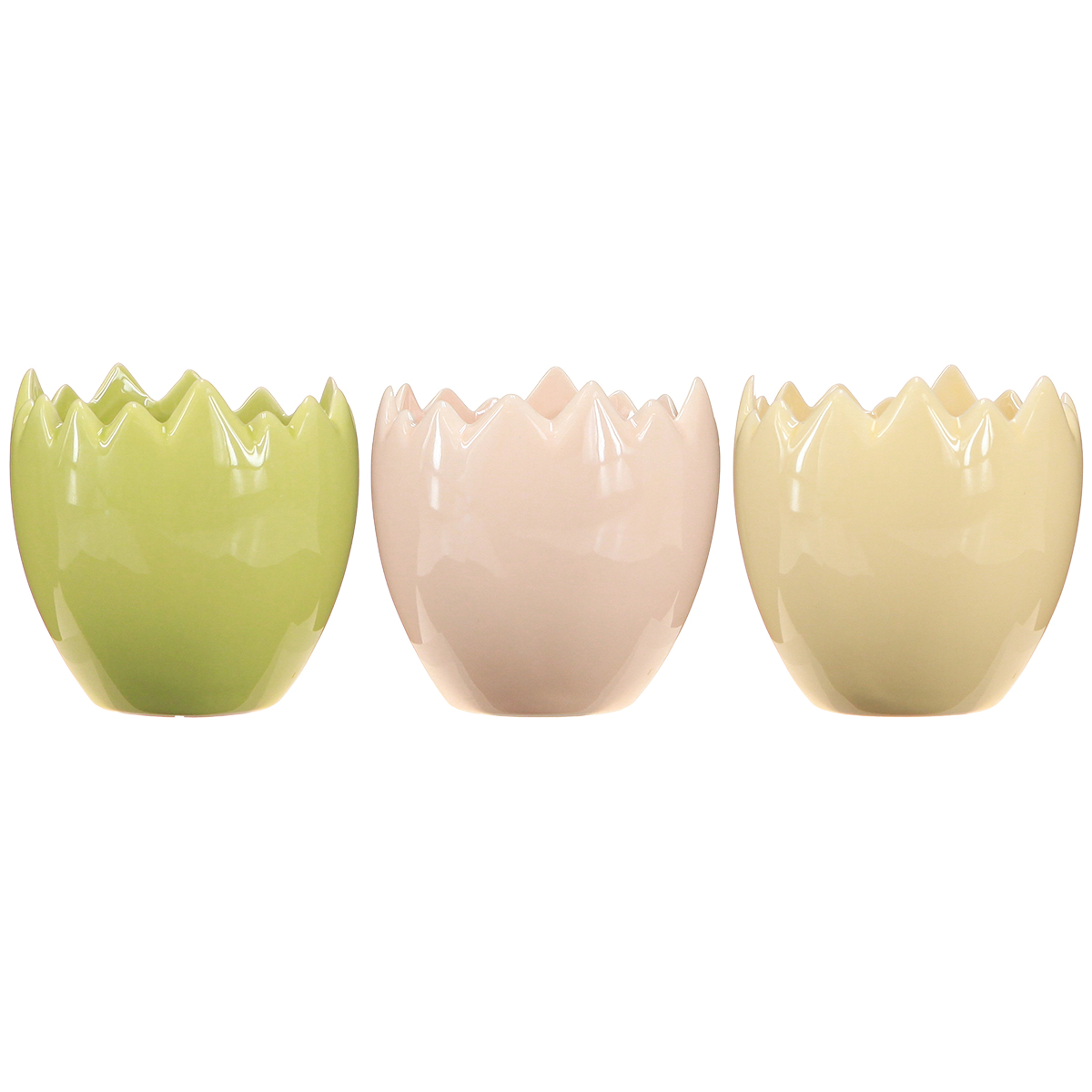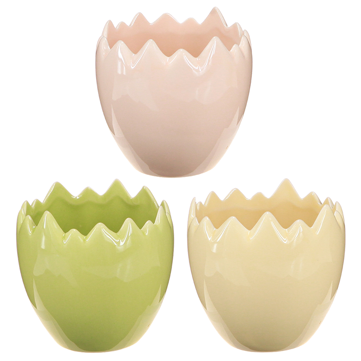 Kdo by nemiloval zkrášlování svého domova malými, okouzlujícími detaily? Naše květináče ve tvaru vejce s opracovanými okraji dodají každé místnosti osobitý nádech! Ať už na parapetu, na stole nebo v dekorativním aranžmá, tyto květináče nabízejí nespočet možností pro kreativní prezentaci malých rostlin, jarních květin nebo dokonce velikonočních dekorací. Který parapet by nezářil nádechem jarní svěžesti, když na něj umístíte tyto okouzlující nádoby? Klasická kombinace pastelových barev – jemné žluté, růžové a svěží zelené – dělá z těchto květináčů harmonický doplněk jakéhokoli stylu interiérového designu. A to nejlepší: dodávají se v praktické sadě tří kusů, ideální pro individuální nápady na dekoraci!