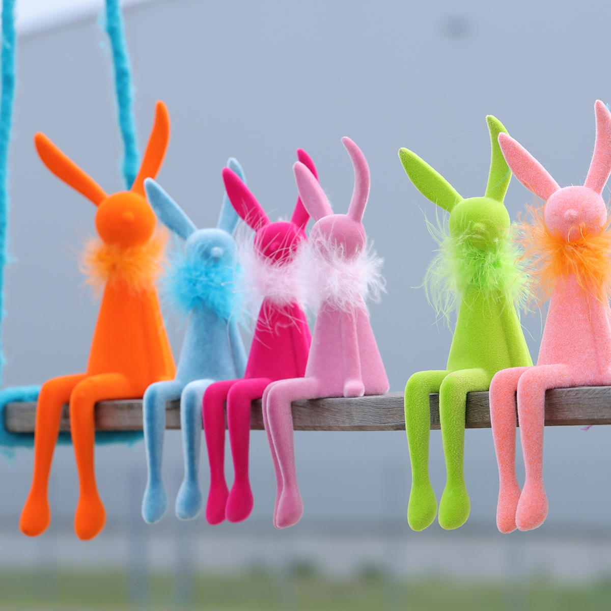 Naše velikonoční dekorace s motivem zajíce zaujmou svou zdařilou kombinací stylu a funkčnosti. Jejich speciální tvar, který jim umožňuje perfektně sedět na okraji jakékoli vodorovné plochy s zdánlivě ležérně visícími nožičkami a zabírat minimum místa. Obzvláště kreativně vypadají na komodě v obývacím pokoji, na poličce nebo dokonce v předsíni s jarní tematikou. Péřové boa jim dodává elegantní a zároveň hravě lehký vzhled, který jednoduše zahřeje u srdce.