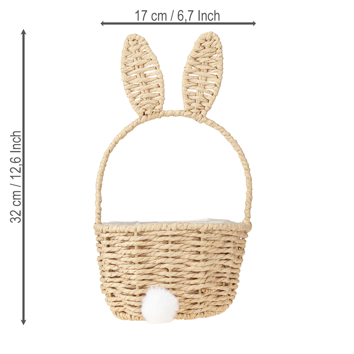 Jaro je za rohem a s ním přichází i ten nejúžasnější čas pro láskyplně vyrobené dekorace. Už máte perfektní dekoraci na váš velikonoční stůl nebo okouzlující ozdobu na hledání velikonočních vajíček? Náš velikonoční koš s motivem zajíčka kombinuje přírodní materiály s okouzlujícím vzhledem. S láskou navržené zajíččí ouška a roztomilý detail nadýchaného ocasu jistě vykouzlí úsměv na tváři, zatímco rustikální vzhled dodá vašemu domovu nádech venkovského stylu. Ať už je tento košík naplněn sladkými pamlsky nebo jarními květinami, vytváří vřelou a příjemnou atmosféru. Promění jednoduchý nápad na dekoraci v něco skutečně výjimečného. Tak proč letos nevytvořit úžasné okamžiky a zářivé úsměvy pro vaše hosty? Tento krásně ručně vyrobený velikonoční koš je přesně to pravé pro oslavu Velikonoc přirozeným a kreativním způsobem.