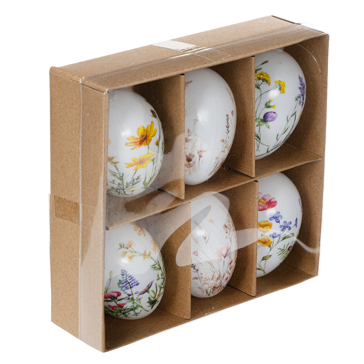 Velikonoční vajíčka s jarními a květinovými motivy, kvalitní velikonoční dekorace, 6 cm, 6 kusů