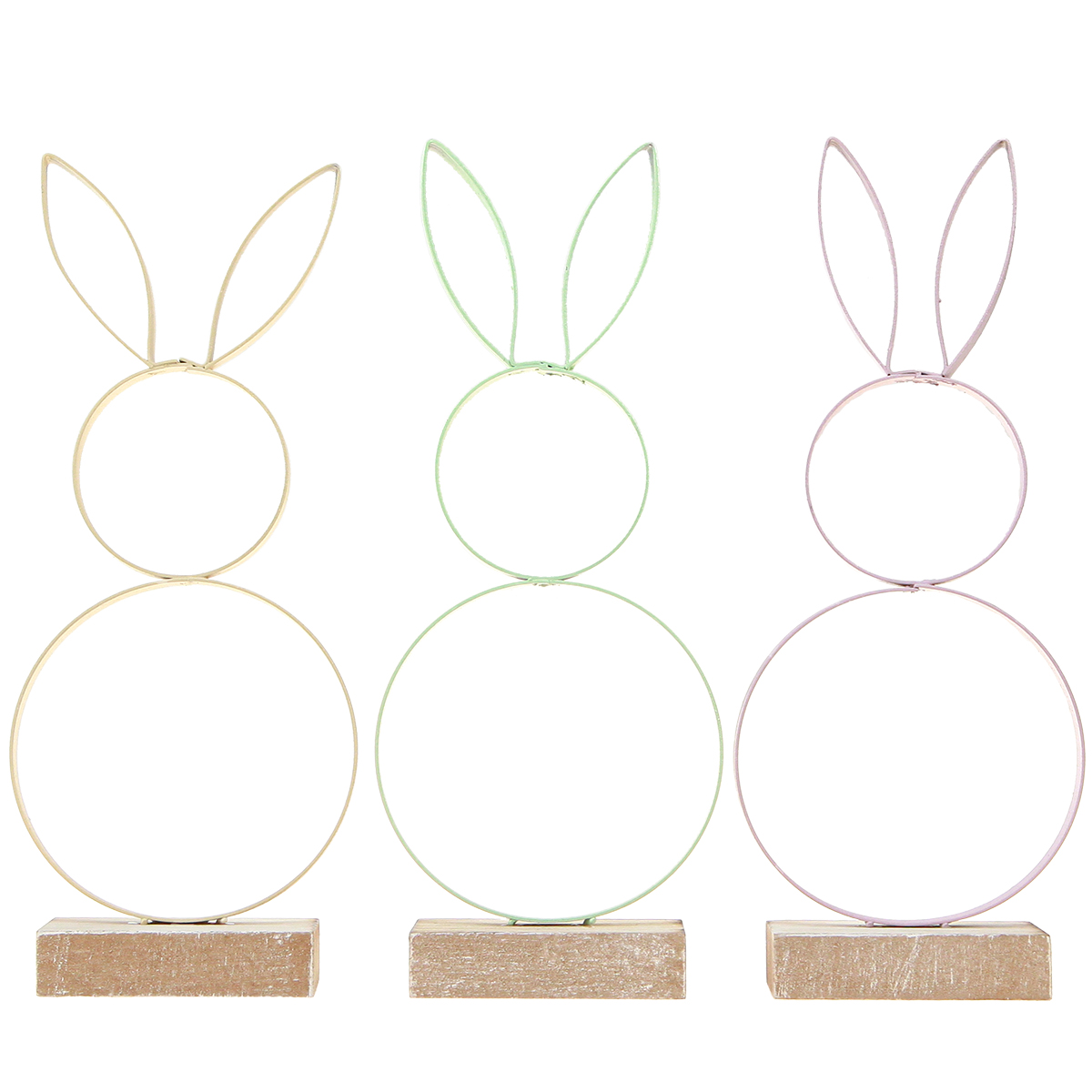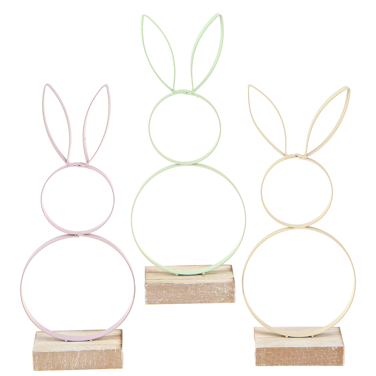 Velikonoční zajíček Dekorace Kov Dřevo Žlutá Mátově růžová V21cm 3 ks