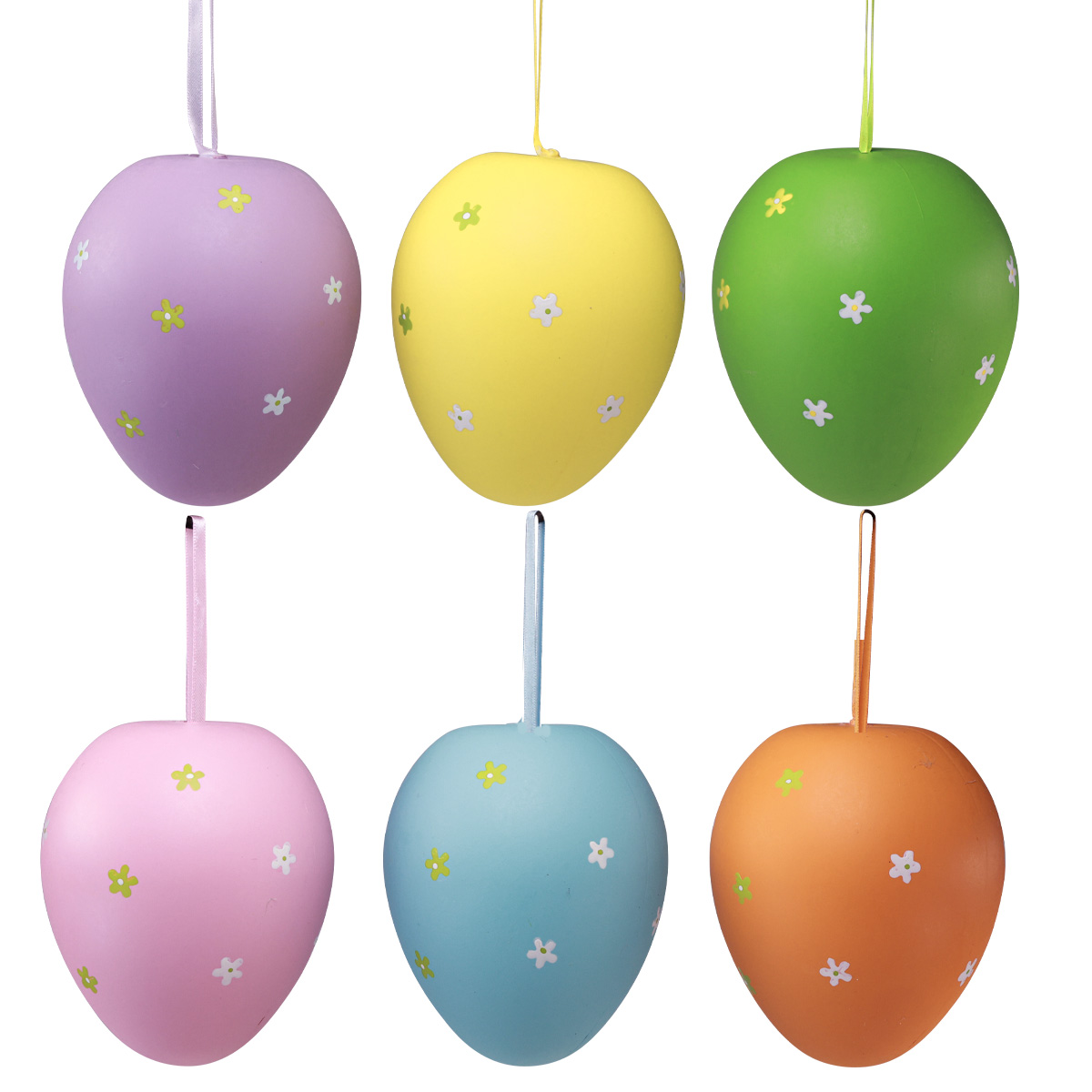 Šest velikonočních vajíček na zavěšení stačí k barevnému vykoupání vašeho aranžmá, věnce nebo okna. Protože se svými téměř 12 centimetry v průměru a výškou dobrých 14,5 centimetru se tato plastová vajíčka schovávat nemusí.