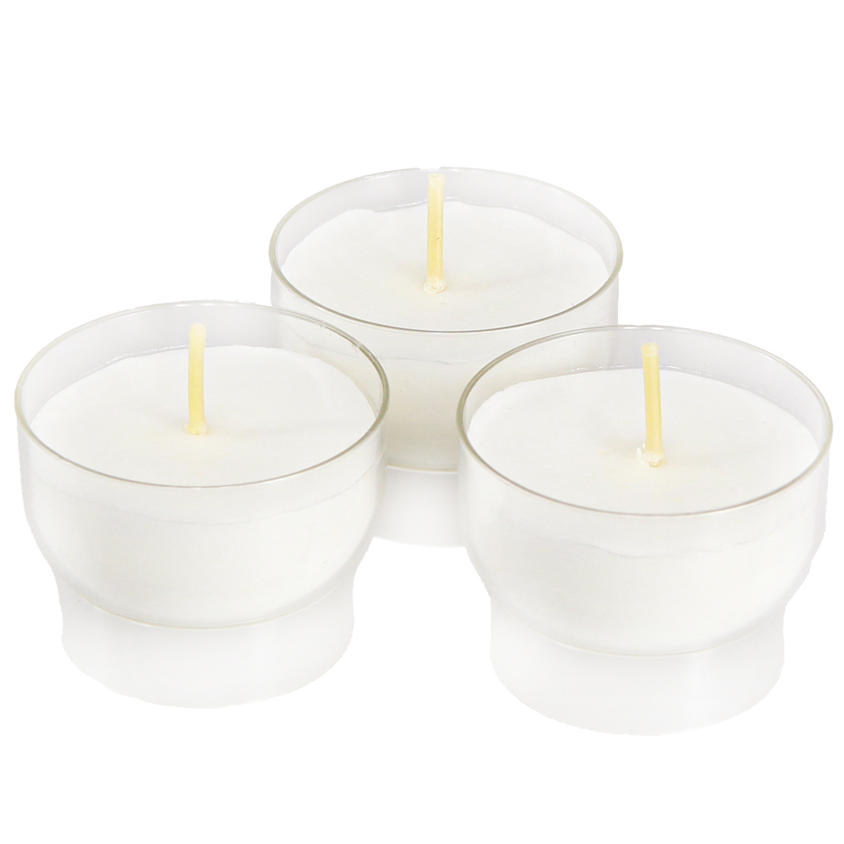 Bílé votivní svíčky v průhledné misce - stylové světlo pro pobožnosti