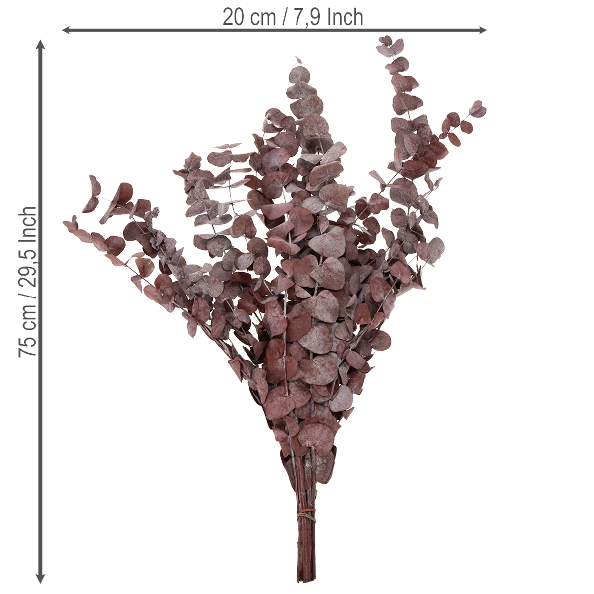 Větve eukalyptu, konzervovaný eukalyptus, sušené květy, červené, 75 cm, 150 g