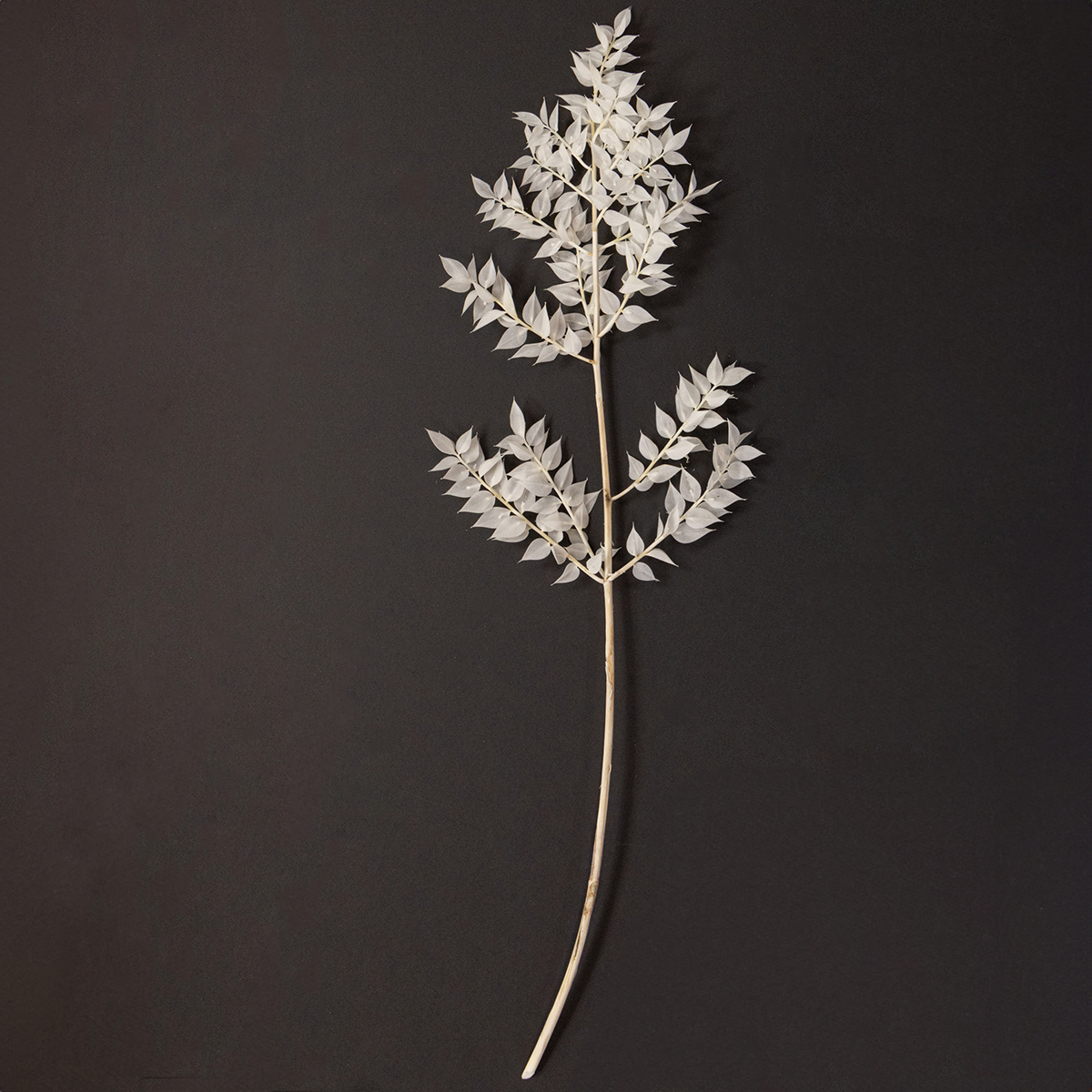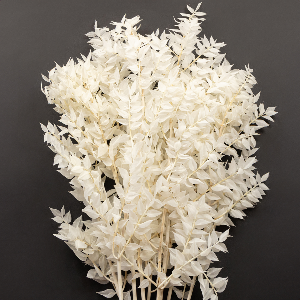 Bělený Ruscus se svou světle krémovou barvou lze použít k vytvoření bohatého kontrastu se sušenými rostlinami, ozdobnými větvemi a exotickými rostlinami v červené, černé, zelené nebo růžové barvě, díky čemuž působí decentněji než čistě bílé ozdobné větve.