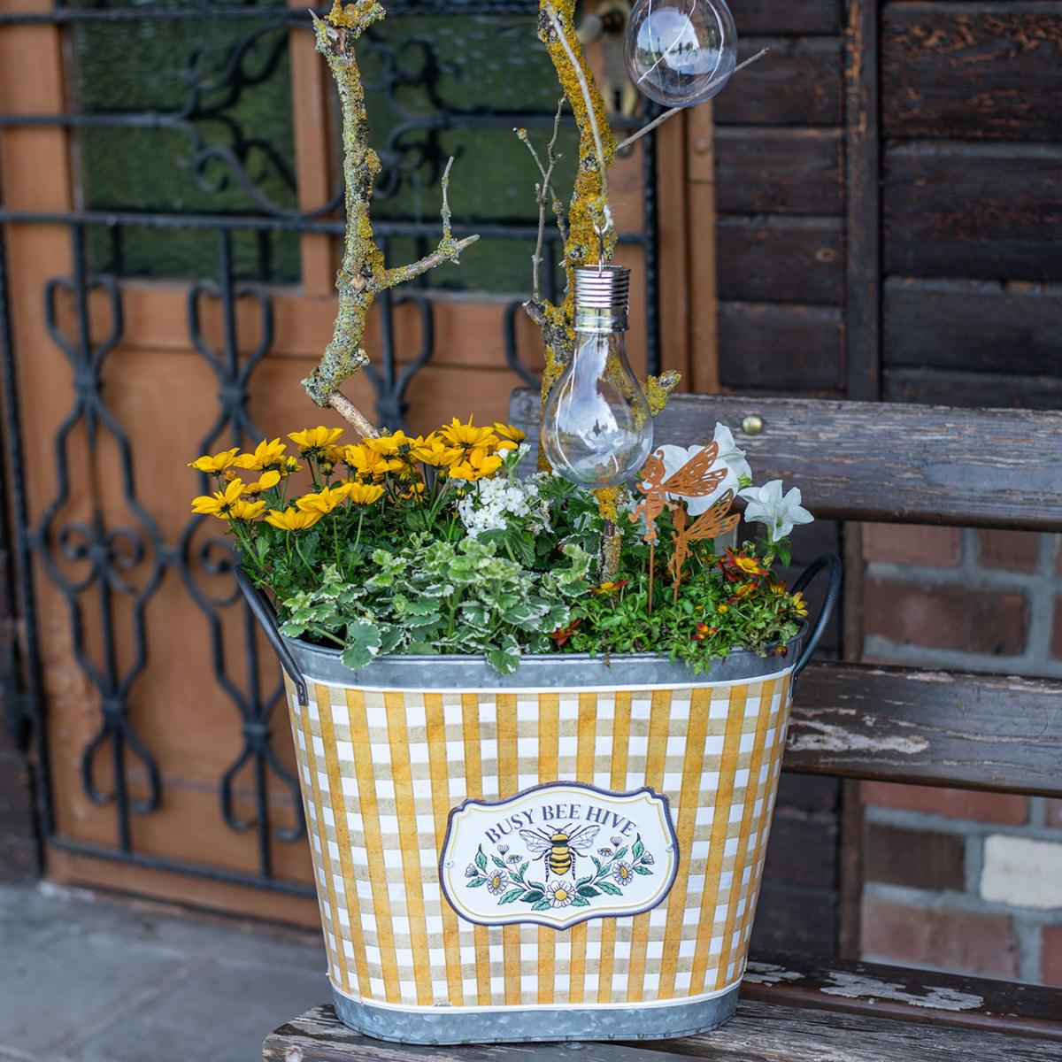 Světlými dekoracemi tak můžete okouzlit nejen sebe, ale i své hosty na letní párty nebo zahradní párty. Bez ohledu na to, zda solární světlo necháte malebně viset z rozkvetlých stromů, zavěsíte ho na provázek jako lucerny nebo ho dokonce ozdobně rozmístíte na bufetu – vaše akce bude zářit v tom nejlepším LED světle! Solární zahradní svítidlo ve stylu žárovky a se 4 teplými bílými LED diodami má výšku cca 15 centimetrů, s věšákem cca 16,5 centimetru. Průměr je přibližně 8 centimetrů.