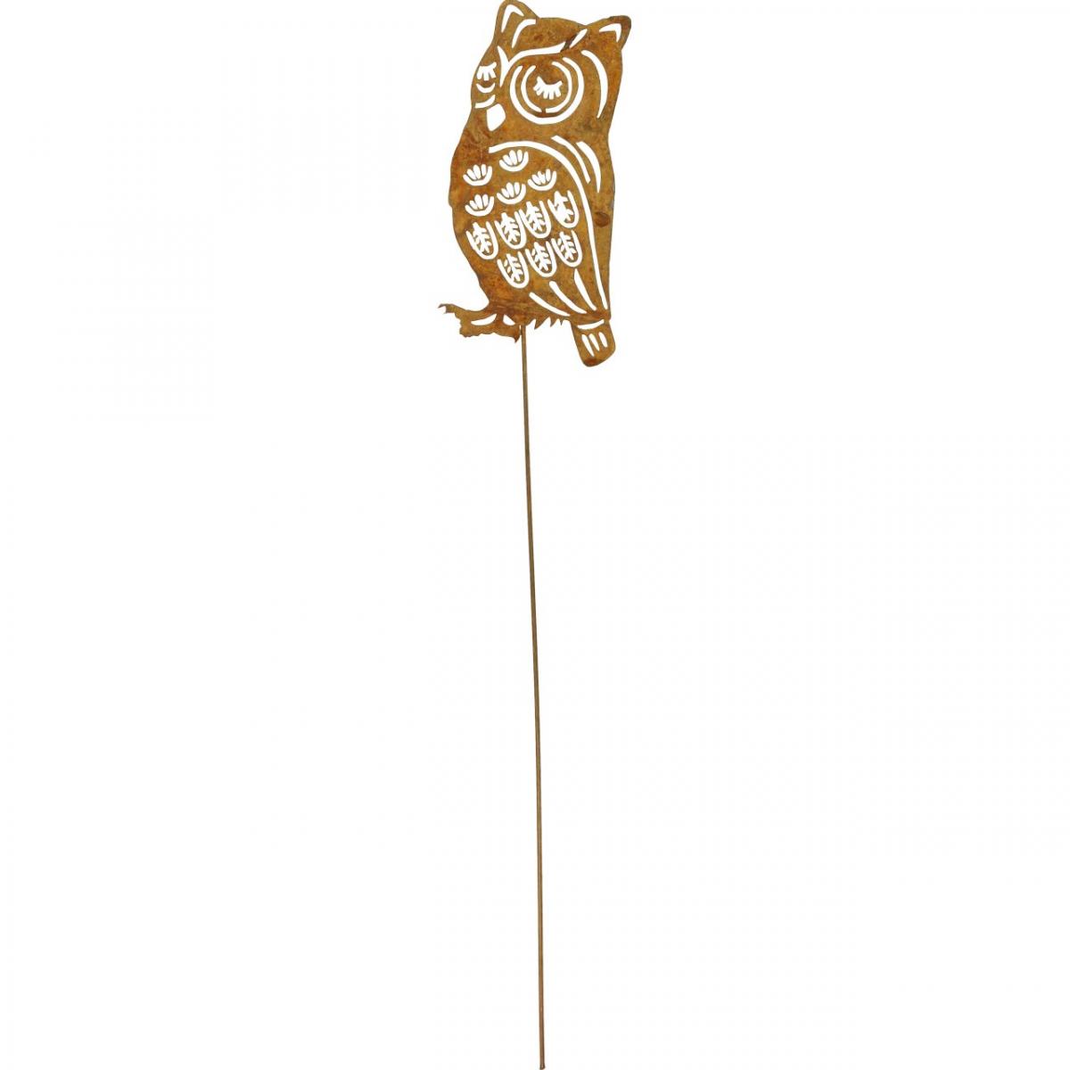 Zahradní kůl rezavá sova kovová patinovaná zátka 19cm