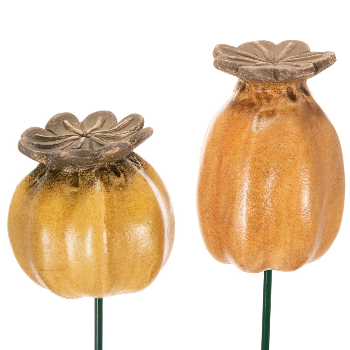 Zahrada je místem k relaxaci a odpočinku a ty správné detaily mohou hrát klíčovou roli. Naše zahradní kolíky s makovíky jsou skutečným poutačem pro váš venkovní prostor. Klasický tvar makovíku v kombinaci s teplou hnědou keramikou a průměrem 7 cm harmonicky zapadne do každé zelené oázy. Sada dvou kolíků je obzvláště vhodná, pokud chcete stylově zvýraznit záhony nebo květináče.