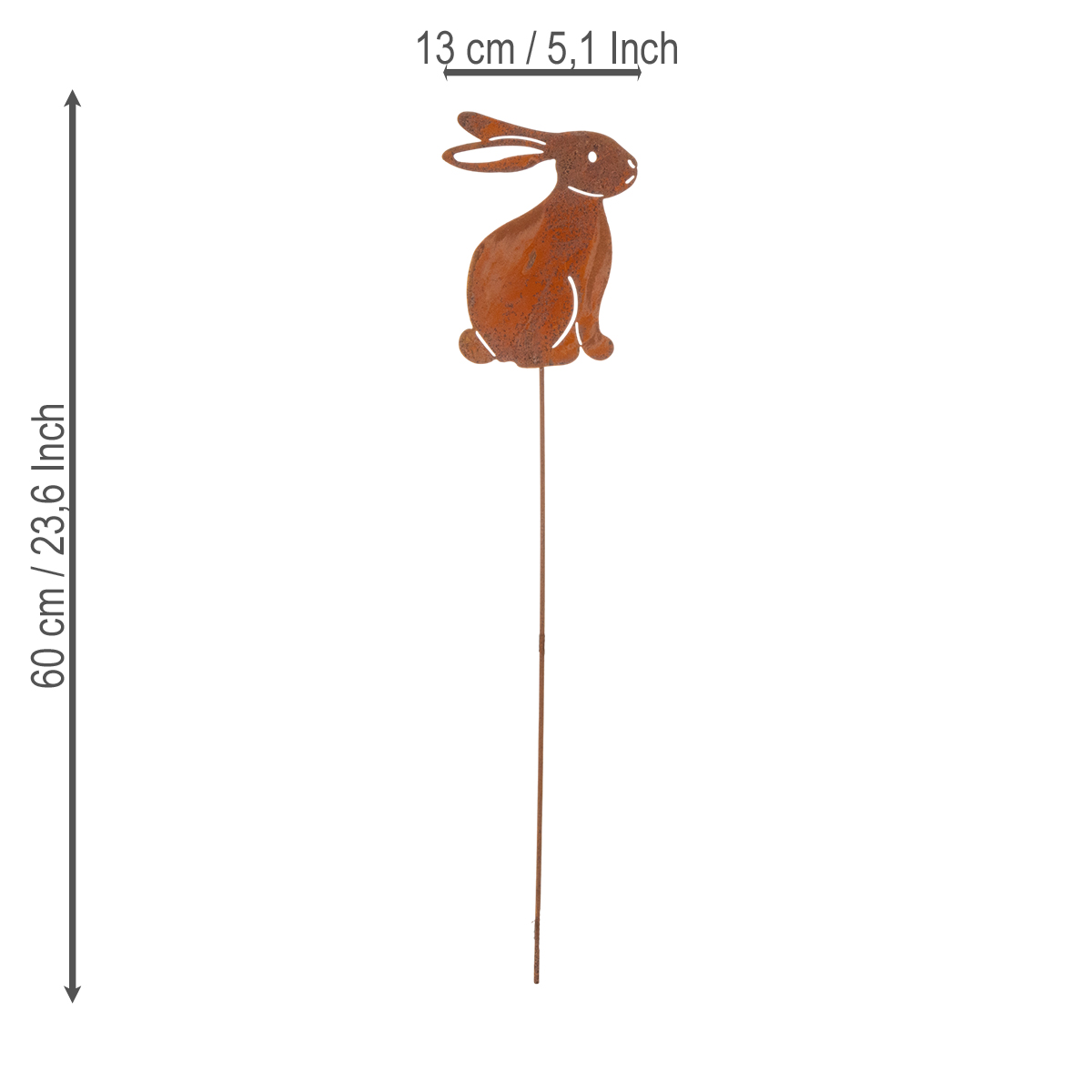 Tito králíci, kteří dosahují výšky 60 cm a mají mírně odsazenou podpěrnou tyč, se snadno a bezpečně integrují do záhonů, květináčů nebo dekorací předzahrádky. Díky svému jednoduchému, ale zároveň výraznému designu se nejen dokonale hodí do venkovského stylu, ale také se bez problémů začlení do prostředí s vintage nebo shabby chic prvky. Prostě skvělí, pokud dáváte přednost přirozenějšímu vzhledu.
