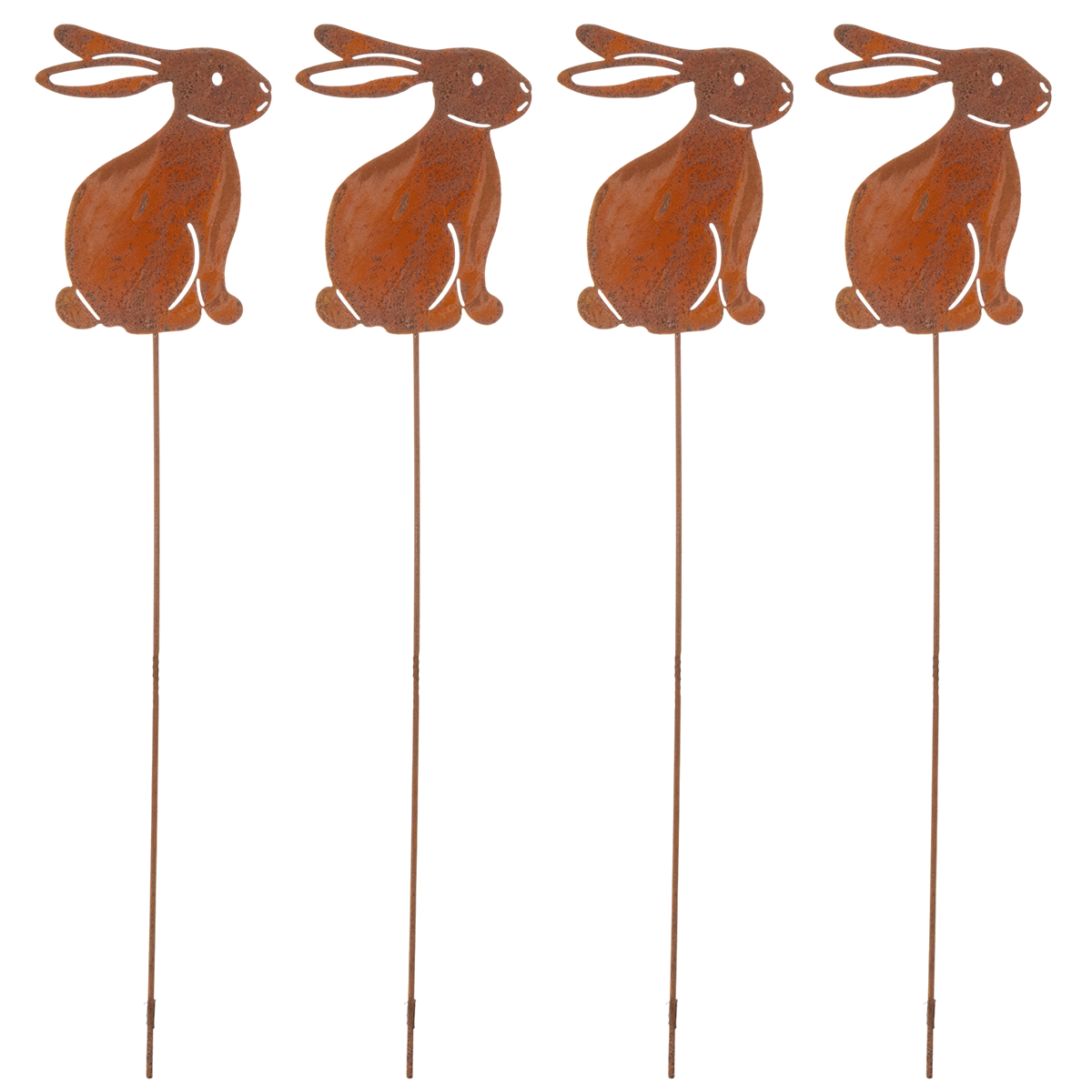 Zahradní králík na velikonoční dekoraci s rezavou úpravou ve venkovském stylu 60 cm 4 ks