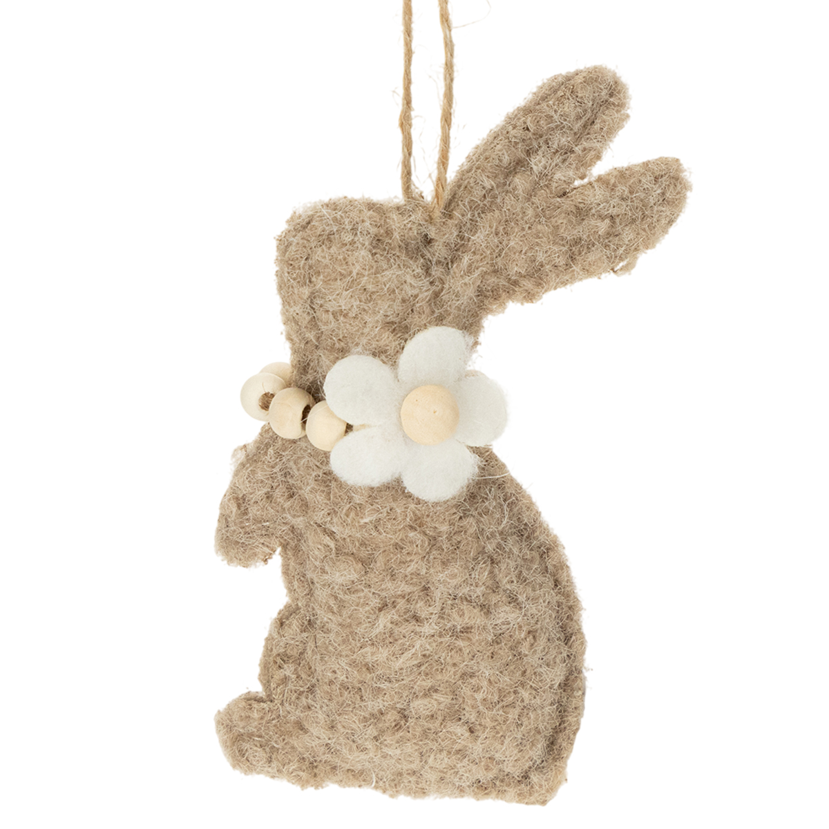 Tato závěsná dekorace v podobě velikonočního zajíčka vyrobená z vysoce kvalitní plsti je nejen dekorativní, ale také úžasně všestranná. Každý zajíček je ozdoben jemnými detaily, jako je filigránový kvítek na krku. Přírodní béžové a krémové tóny lze krásně kombinovat s dalšími dekorativními prvky, od zářivých velikonočních vajíček až po svěží zeleň.