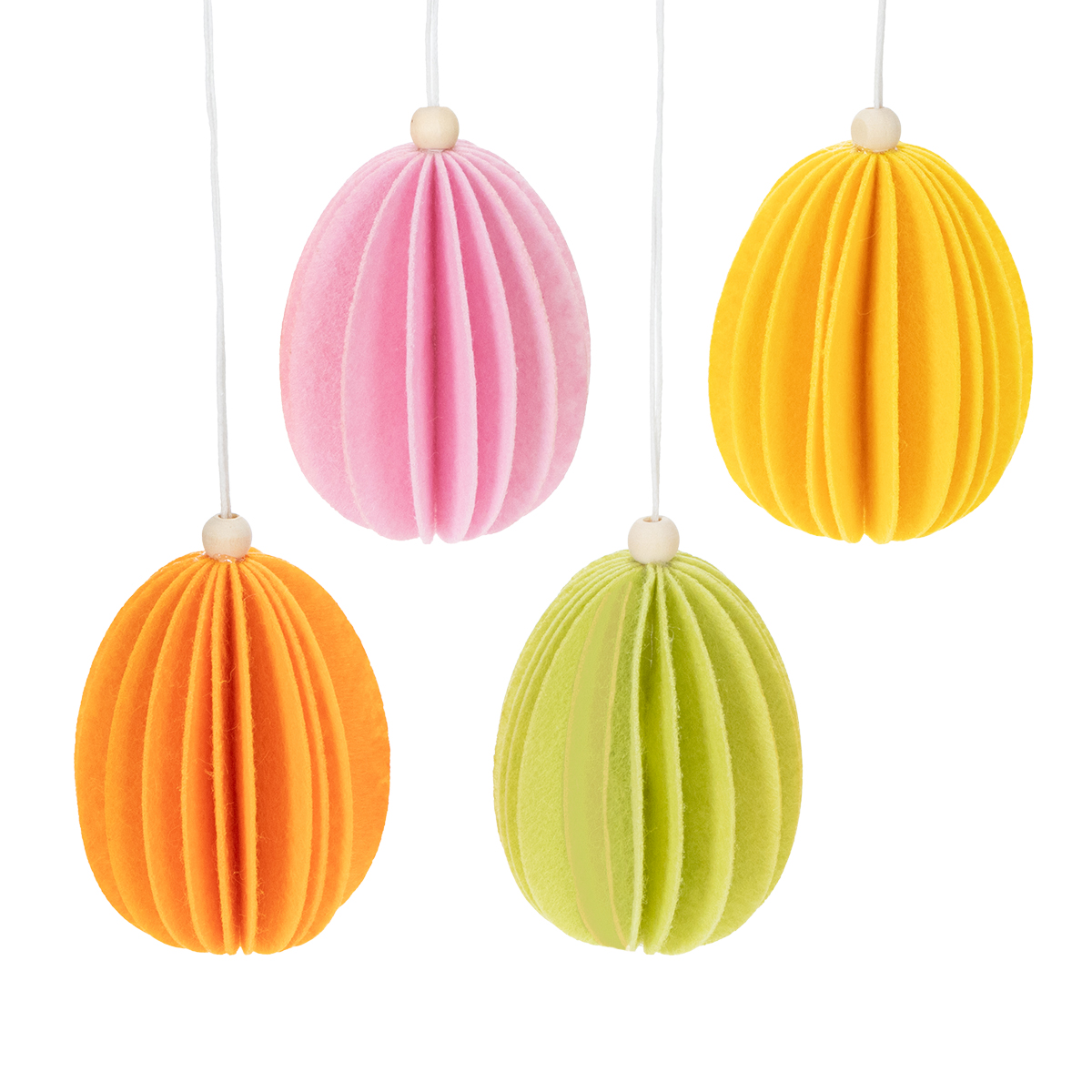 Velikonoce jsou za rohem a hledáte jednoduchý, ale efektivní způsob, jak dodat svému domovu veselý nádech? Naše závěsná velikonoční dekorace na vajíčka z měkké plsti okamžitě vytvoří útulnou jarní atmosféru ve vašem obývacím pokoji i na zahradě. Zářivé barvy růžové, žluté, oranžové a zelené přinesou radost a živost do každého prostoru – prostě nádherné! Ať už jsou zavěšeny na parapetech, větvích nebo v zahradě mezi rozkvetlými květinami, tyto velikonoční ozdoby vypadají skvěle kdekoli.